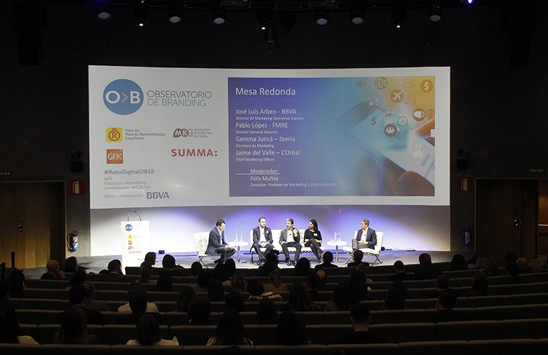 Bajo el título “Marcas y Reto Digital: un salto a nuevas oportunidades”, el pasado jueves 22 de febrero tuvo lugar la 7ª edición del Observatorio de Branding, un evento abierto al conocimiento, la reflexión y el análisis sobre el nuevo giro que está tomando el mundo del branding y las marcas. Más de 200 profesionales y directivos de las áreas de marketing, branding y comunicación se dieron cita en la Ciudad BBVA para analizar casos de éxito y tendencias, y conocer hacia dónde van nuestras marcas, cuáles son los retos y amenazas que afrontan a raíz de las nuevas tecnologías y la imparable digitalización de la economía. El encuentro estaba organizado un año más por la Asociación de Marketing de España, GfK y SUMMA, a los que se ha sumado además el Foro de Marcas Renombradas Españolas y, como entidad colaboradora, BBVA.