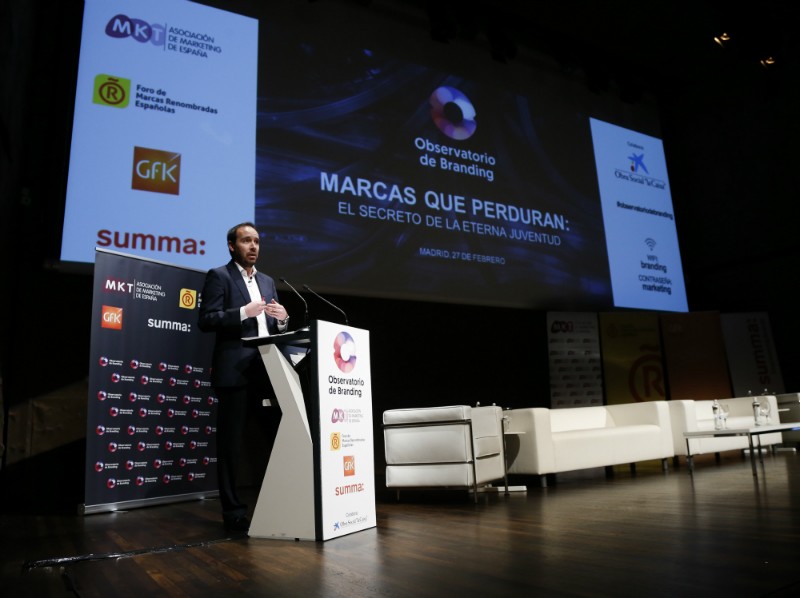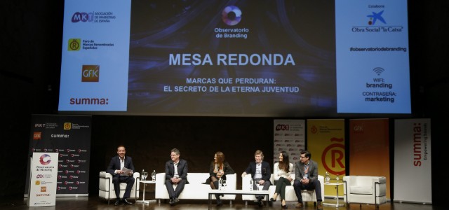 Bajo el título ‘Marcas que perduran: el secreto de la eterna juventud‘, el pasado miércoles 27 de febrero tuvo lugar la 8ª edición del Observatorio de Branding en el auditorio de CaixaForum de Madrid. Un evento abierto a la reflexión, el conocimiento y el análisis sobre el mundo del branding y las marcas.  Más de 250 profesionales y directivos de las áreas de marketing, branding y comunicación se reunieron para buscar respuestas en torno al momento actual cada vez más disruptivo y perecedero de las marcas. Cinco ponencias de expertos y directivos de marcas emblemáticas, y un debate entre todos ellos, jalonaron una intensa mañana de conocimiento. El encuentro fue organizado un año más por la Asociación de Marketing de España, GfK y SUMMA,  el Foro de Marcas Renombradas Españolas y, como entidad colaboradora, Obra Social La Caixa.