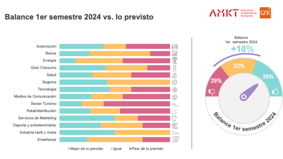 Todos los sectores han cerrado la primera mitad del año mejor de lo previsto, excepto energía, retail, turismo y transporte, según el Índice de Expectativas de los Directores de Marketing (IEDM)
