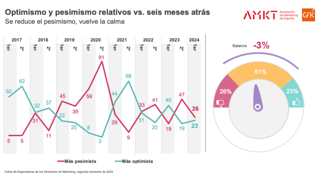 Durante la mañana del 11 de julio, nos reunimos en la sede de nuestro socio empresa corporativo Group M, para realizar la presentación de los resultados de la XXXVI Ola del Índice de Expectativas de los Directores de Marketing (IEDM) del segundo semestre de 2024. Este estudio, elaborado conjuntamente por AMKT y la consultora GfK, identifica las previsiones de los directores de Marketing de grandes compañías que operan en los principales sectores económicos del país para los próximos seis meses del año.