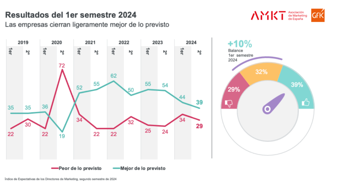 Por otro lado, respecto a los resultados del primer semestre y sus previsiones de inicio de año, un 71 % de los entrevistados declara haber cerrado igual o mejor de lo previsto. Un 39 % declara haber cerrado mejor, un 29 % peor y un 32 % de acuerdo con lo planificado.