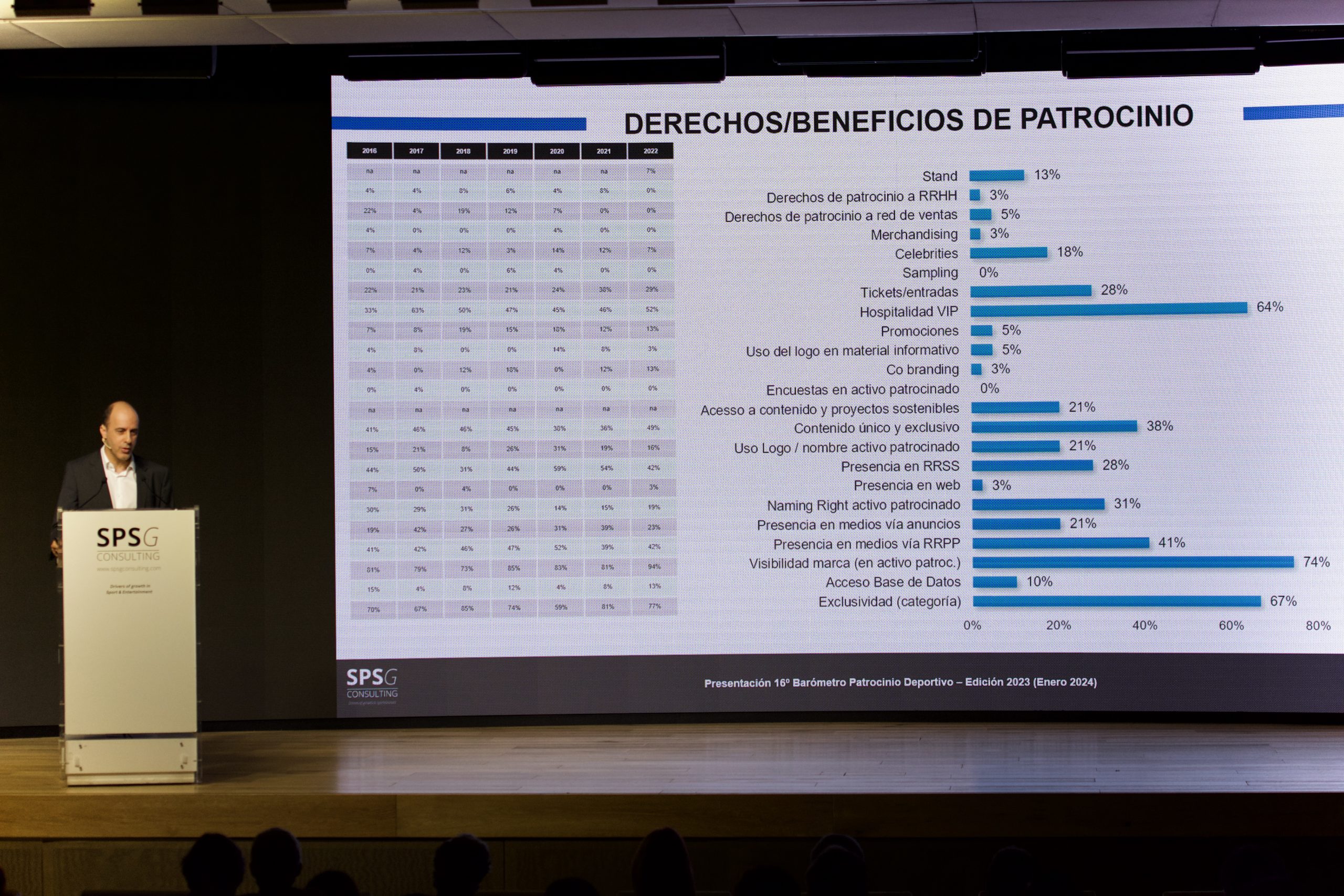 En temas de estadísticas, el 59 % de las marcas confirman que invierten como mínimo el 75 % de su presupuesto de patrocinio en deporte; un 32 % de las marcas patrocinadoras afirman que aumentarán en 2024 su inversión en derechos de patrocinio; y un 49 % que mantendrán el nivel de inversión en relación al año pasado.