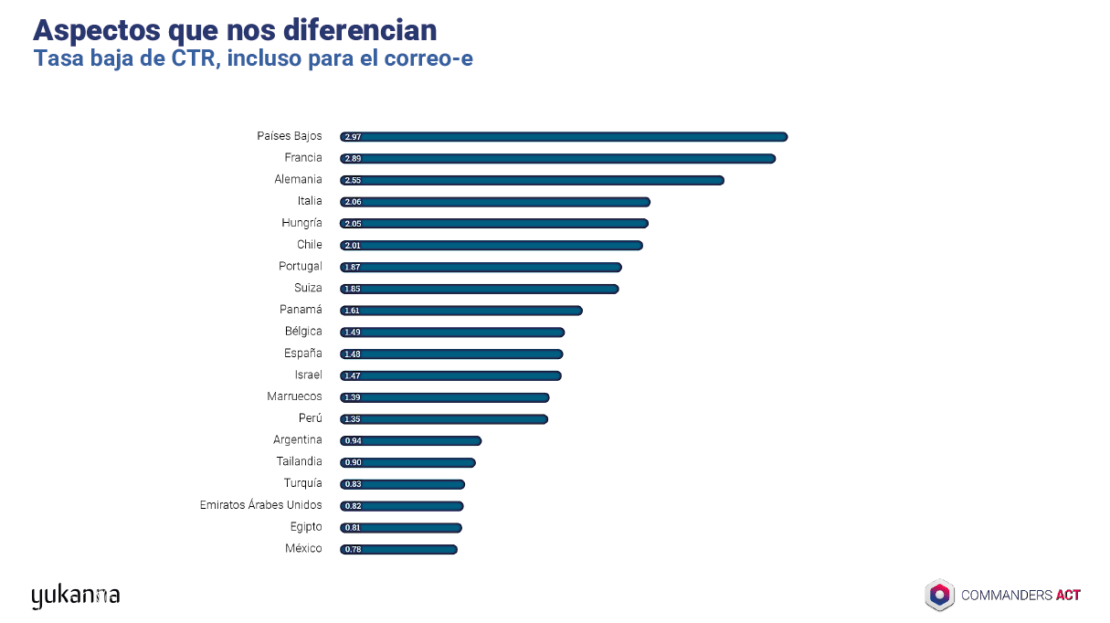 Por su parte, Juan Vázquez presentó los resultados de un estudio basado en un análisis de 15 000 palabras de alta frecuencia en inglés en alrededor de 100 000 lugares. El estudio utiliza, entre otros elementos diferenciadores, el promedio de indicadores del coste PPC y la conversión, reflejando en términos generales una dispersión muy pequeña y un grado de confianza en el dato elevado. El promedio de todas las industrias en estos aspectos es de un 6,11 % de proporción de clics; 4,22 dólares de coste por clic; un 7,04 % de tasa de conversión y 53,52 dólares de coste por lead, mientras que España presenta, en comparación, una tasa de CTR muy baja y muy pocos estudios que lo reflejen.