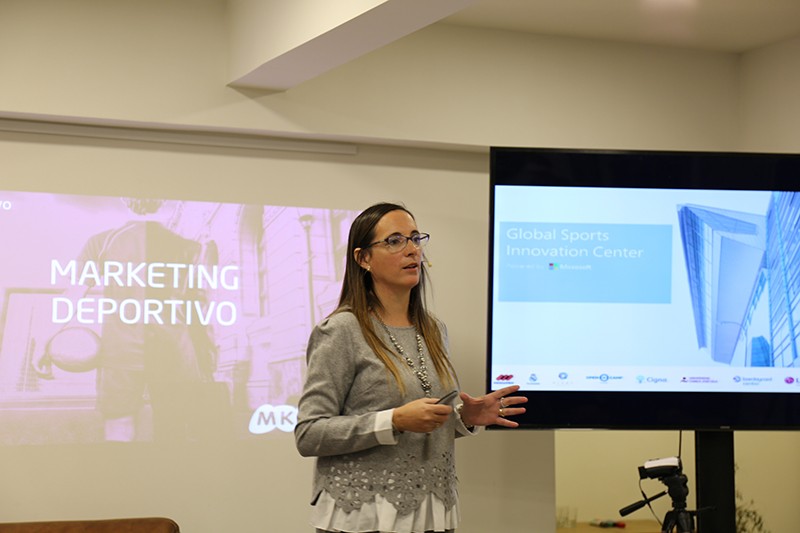 [blocktext align=”left”]“Un sector que no ha dejado de crecer en los últimos años y en el que las marcas tienen la necesidad de reinventarse aprovechando las oportunidades que les brindan las nuevas tecnologías” – María Sánchez del Corral[/blocktext] La jornada se ha dividido en tres bloques principales. El primero de ellos, bajo el título “Nuevas tecnologías aplicadas al marketing deportivo”, ha arrancado con la ponencia de Iris Córdoba, General Manager de Global Sports Innovation Center powered by Microsoft. Durante su exposición, ha colocado al seguidor en el centro de atención, planteando las nuevas formas que ofrece la tecnología de relacionarnos y conectar con él, posibilitándole una manera diferente de vivir y seguir el deporte. “La tecnología es un combustible habilitador de esa experiencia”, explicaba. “GSIC actúa como dinamizador de un nuevo ecosistema en el que facilita sinergias entre grandes y pequeñas empresas que, en la práctica, se convierten en grandes proveedoras de tecnología”. Pretenden también hacer crecer la industria del deporte con un espacio para investigación, colaboración e innovación en productos y servicios tecnológicos. Para finalizar su ponencia, Córdoba ha presentado algunos casos de éxito de productos innovadores que emplean la tecnología para mejorar la experiencia, tanto del deportista como del amante del deporte, con ejemplos que van desde la utilización de tatuajes temporales para ofrecer promociones a los asistentes a eventos deportivos a la creación de dispositivos multisensor que proporcionan datos sobre el rendimiento del atleta.