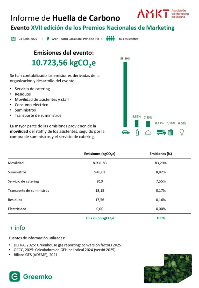 Puedes consultar aquí el informe completo de la huella de carbono generada durante la gala de los XVII Premios Nacionales de Marketing: