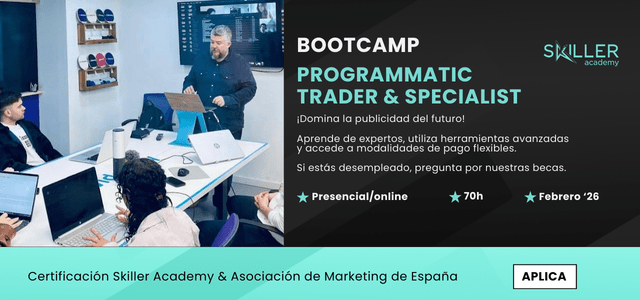 En el entorno digital actual, la compra programática ha dejado de ser una tendencia para convertirse en una necesidad. Por ello, nuestro socio Skiller Academ y ha creado el bootcamp «Programmatic Trader & Specialist», diseñado para ayudarte a adquirir habilidades altamente demandadas y diferenciarte en el sector del marketing digital.